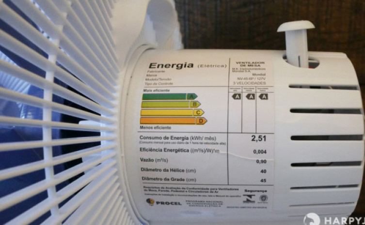 Observe a quantidade de vento que o ventilador é capaz de produzir. Na Etiqueta do Inmetro, você é informado quanto à vazão do ventilador. Assim, se dois modelos consomem a mesma quantidade de energia, opte por aquele de maior vazão, porque certamente será capaz de ventilar mais que o outro.