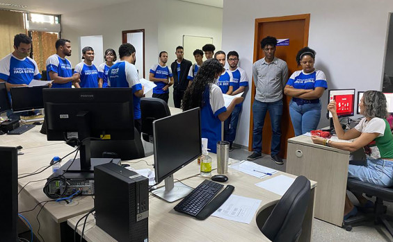 A Agência de Tecnologia da Informação (ATI) recebeu, nessa segunda-feira, 18, cerca de 20 alunos do curso técnico de Desenvolvimento de Sistemas do Serviço Nacional de Aprendizagem Industrial (Senai). A visita, guiada pelo gerente de Sistemas Corporativos da Agência e professor do curso, Edir Santos, propiciou o contato dos estudantes com a prática em TI.