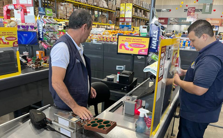 Em verificação na manhã desta quarta-feira, 12, foi identificada uma balança de pesagem com alteração de 30 gramas em favorecimento do consumidor. Neste caso, o equipamento foi considerado impróprio para o uso, selado com lacre vermelho e retirado para correção. “A verificação da Agência de Metrologia visa à harmonia nas relações de consumo, ou seja, que o equipamento esteja em pleno funcionamento, não lesando o consumidor e muito menos o empresário”, pontua a presidente da pasta, Grazielly Oliveira.