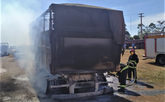 O incêndio foi combatido e os bombeiros recuperaram um botijão de gás GLP, de 13kg, e dois estepes que estavam acoplados na parte da frente do semirreboque.