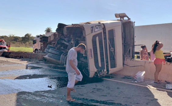 Em Colinas do Tocantins, nas proximidades do viaduto, na BR-153, uma carreta-baú carregada de carne tombou, por volta das 8h30, deste domingo. O condutor do veículo, Deivid Santos Alves, teve escoriações no braço direito, e a passageira Valeria Alves da Silva não apresentou ferimentos. Ambos estavam com cinto de segurança e recusaram o atendimento dos bombeiros.