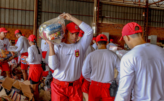 Nesta sexta-feira, 07, a primeira etapa do expediente dos mais de cem alunos-soldados do Curso de Formação de Praças (CFP), do CBMTO, foi com o carregamento de duas carretas, sendo uma com 30 e outra com 28 toneladas de donativos.