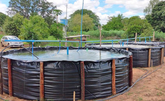 Na propriedade de José Leandro, foram implantados três tanques com capacidade estimada de 30 mil litros cada, ocupando uma área de 120 m².
