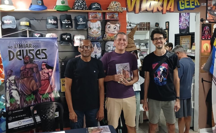 O universo mítico criado pelo artista Geuvar Oliveira avança para um território ainda mais denso e cinematográfico com o lançamento de No Limiar dos Deuses - Volume 2, segundo capítulo da série de quadrinhos autoral. A obra dá continuidade à narrativa desenvolvida pelo artista e foi viabilizada com patrocínio da Lei Complementar nº 195/2022 (Lei Paulo Gustavo). O livro pode ser adquirido na loja Vitória Geek, em Palmas, ou diretamente pelo WhatsApp do autor, no número (63) 98136-5844.