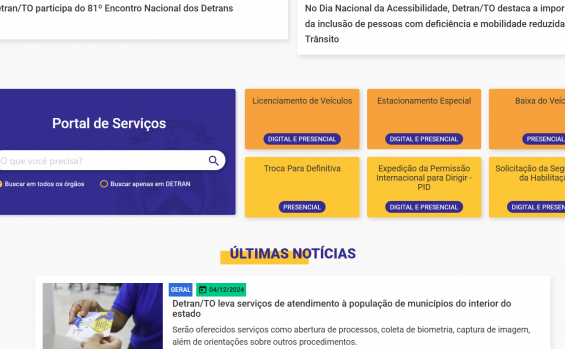 O Departamento Estadual de Trânsito do Tocantins (Detran/TO) informa aos condutores tocantinenses que diversos serviços digitais estão disponíveis por meio dos aplicativos Detran TO Fácil e Carteira Digital de Trânsito (CDT), além do site institucional, permitindo que os usuários possam realizar alguns procedimentos sem a necessidade de deslocamento até o órgão. No caso do aplicativo e do CDT, os usuários devem acessá-los com o login e senha da conta do gov.br.