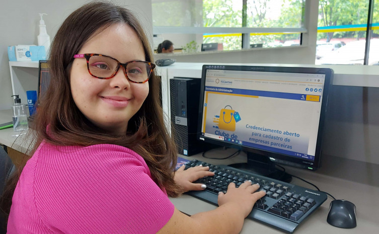 Maria Eduarda Araújo, que possui síndrome de Down, é uma das mais novas servidoras que compõem o quadro da Secad. Atualmente, ela atua na recepção da pasta. Maria Eduarda conta que esta é sua primeira experiência profissional e que está bastante motivada. “Estou conhecendo muita gente e aprendendo coisas novas. A secretaria é um espaço onde posso ser quem sou e aprender com meus colegas”, compartilhou.