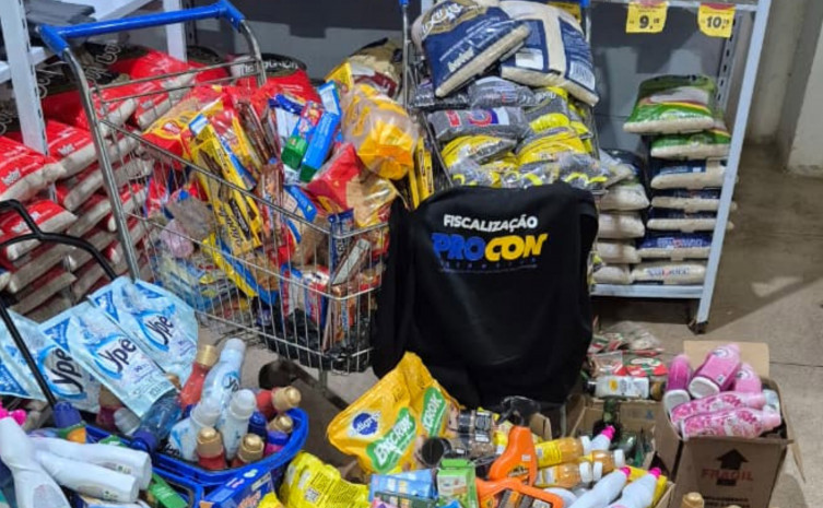 Durante a fiscalização, foram lavrados dez autos de infração por irregularidades como a comercialização de produtos vencidos, sem informação de fabricação e validade, além de mercadorias proibidas para a venda direta ao consumidor. Entre os itens recolhidos estavam farinha de trigo, café, calabresa fatiada, sorvete, refrigerante, óleo de coco, feijão preto, arroz, biscoito, muçarela fatiada, suco em pó, macarrão instantâneo, ração para cachorro, desinfetante, azeite, entre outros.