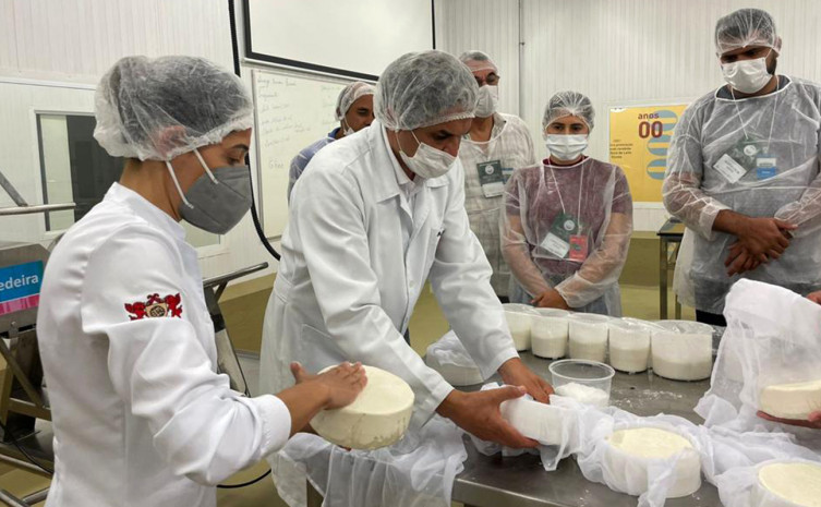 Com atividades teóricas e práticas, a capacitação foi apresentada em três módulos, abordando práticas tecnológicas na produção de queijos, requeijão, ricota, bebidas lácteas e doce de leite.