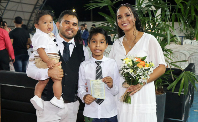 Jeconias do Nascimento Santos e Leticia da Cruz foram um dos casais beneficiados com o casamento comunitário. Ele, natural de Açailândia/MA, 34 anos, e ela, natural de Augustinópolis, 27 anos, estão juntos há 11 anos e encontraram no casamento comunitário a oportunidade de realizar um dos grandes sonhos de suas vidas. "Essa é uma ação muito boa, pois muita gente precisa dessa ajuda para poder realizar esse sonho e tenho muita gratidão por participar desse ato, em companhia de outros casais que foram beneficiados", frisou Jeconias.