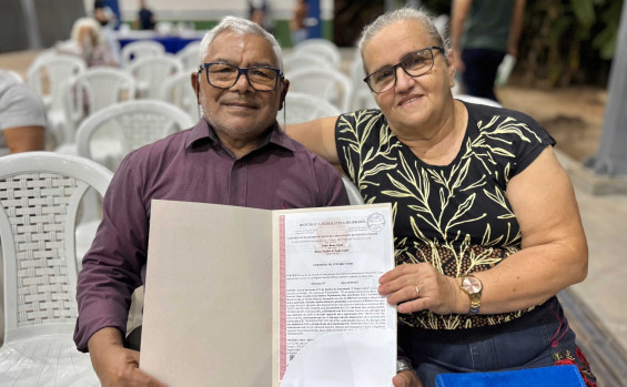 O aposentado Lorival Alves de Sousa, morador de Piraquê e um dos 66 beneficiados, expressou a alegria de finalmente conquistar o documento da sua casa após mais de três décadas de espera. “Temos muito a agradecer a todos que colaboraram para essa entrega. Depois de 33 anos, agora sou dono de verdade”, celebrou, ao lado da esposa.