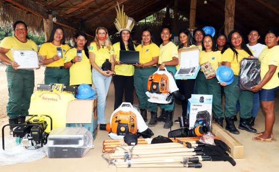 Mulheres indígenas que atuam na Associação de Brigadistas Xerente (Abix) receberam do Governo do Tocantins uma série de equipamentos para os trabalhos da brigada voluntária feminina de prevenção e combate aos incêndios florestais, com foco nas queimas prescritas e educação ambiental comunitária. O evento ocorreu nessa sexta-feira, 17, em Tocantínia, na Aldeia Cachoeirinha, do povo Xerente. A Secretarias de Povos Originários e Tradicionais (Sepot) também realizou uma entrega simbólica na sede da Pasta.