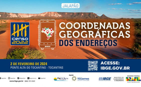 O IBGE divulgará nesta sexta-feira, 2, às 10 horas, em Ponte Alta do Tocantins, portal de entrada do Parque Jalapão, os dados das coordenadas dos endereços do Censo Demográfico 2022. Na programação, ocorre oficina com gestores nesta quarta-feira, 31, direcionada aos servidores de planejamento que lidam diretamente com informações e dados disponibilizados pelo Instituto. A capacitação ocorre no auditório da Advocacia-Geral da União, em Palmas, e contará com a presença do presidente do IBGE, Marcio Pochmann.