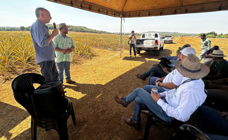 Produtor do município e proprietário da Chácara Princesinha, Aldeir Freitas Oliveira, compartilhou sua experiência com a produção do abacaxi. “Atualmente, tenho 350 mil pés plantados, mas minha meta é alcançar 1 milhão de pés nos próximos anos”, projetou.