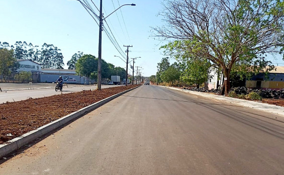Com todo o sistema de drenagem pronto, os 7 km de asfalto terminado, sendo 3,5 km de pista dupla no acesso ao Distrito, a empreiteira agora executa o meio-fio, as sarjetas e as calçadas das ruas.