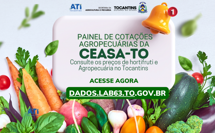 Produtores rurais, comerciantes, agentes do setor e a população em geral passam a contar com acesso facilitado a informações detalhadas e atualizadas sobre os preços de hortifrutigranjeiros comercializados na Central de Abastecimento do Tocantins (Ceasa/TO). O Painel de Cotações Agropecuárias, desenvolvido pelo Governo do Tocantins, por meio da Agência de Tecnologia da Informação (ATI) e da Secretaria de Estado da Agricultura e Pecuária (Seagro), já está disponível ao público e representa um importante avanço na transparência e no fortalecimento da competitividade do agronegócio tocantinense.