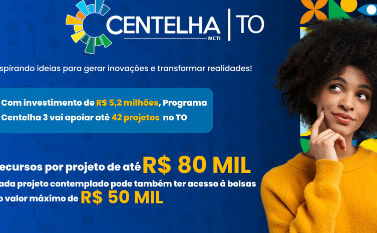 O Governo do Tocantins, por meio da Fundação de Amparo à Pesquisa do Tocantins (Fapt), publicou o edital do Programa Centelha 3 Tocantins, que disponibiliza recursos financeiros, capacitação e acompanhamento técnico para transformar ideias inovadoras em negócios. Confira aqui o edital completo.