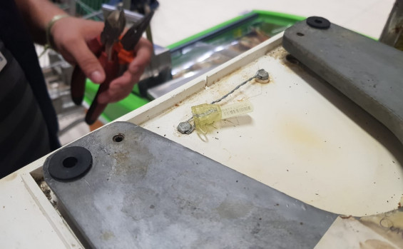 Se algum equipamento estiver com irregularidades, como, por exemplo, modificar o peso visando apropriação indébita para o comerciante, o equipamento será lacrado na cor vermelha e será aplicada sanção à empresa, por enganar o consumidor.