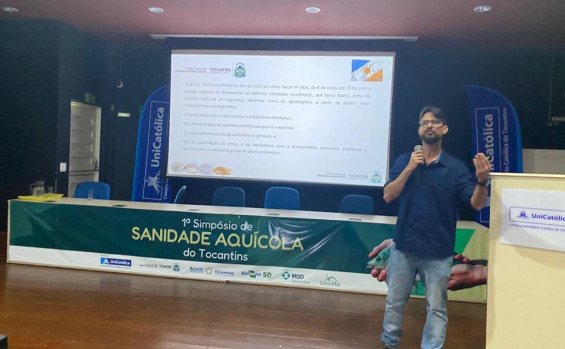 A Secretaria de Pesca e Aquicultura (Sepea) esteve presente na cerimônia de abertura do 1° Simpósio de Sanidade Aquícola do Tocantins, na manhã desta sexta-feira, 10, no auditório do Centro Universitário Católica, em Palmas. O evento ocorre em consonância com a VII Semana da Piscicultura do UniCatólica e conta com o apoio do Governo do Tocantins, da Embrapa Pesca e Aquicultura, da Agência de Defesa Agropecuária (Adapec) e outros parceiros.