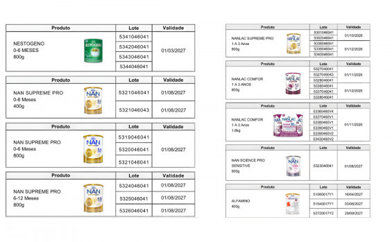A medida foi oficializada por meio da Resolução nº 32/2026, publicada nesta quarta-feira, 7, e envolve produtos das marcas Nestogeno, Nan Supreme Pro, Nanlac Supreme Pro, Nanlac Comfor, Nan Sensitive e Alfamino, fabricados pela empresa Nestlé Brasil Ltda. (CNPJ: 60.409.075/0001-52).