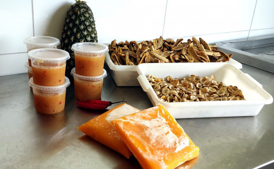 O curso contou com orientações práticas da engenheira Gabriela, no processamento e no aproveitamento de frutas, com a produção de geleia de abacaxi com pimenta, banana desidratada e polpa de maracujá.