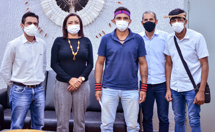 Com intuito de buscar informações sobre os projetos desenvolvidos pelo Governo do Tocantins, por meio da Secretaria de Estado da Cultura e Turismo (Sectur), representantes da aldeia Catämjê, o cacique Wagner Katamy Ribeiro da Silva Krahô-Kanela, e o vice-cacique Josiel Hujk Matos Gomes Krahô-Kanela, estiveram nesta terça-feira, 22, na sede da pasta. Representando o titular da pasta, Hercy Filho, a secretária Executiva Jocélia Costa, acompanhada do superintendente da Cultura, Relmivam Milhomem, e do representante da superintendência do Turismo, Marcos Miranda, receberam os representantes da aldeia.