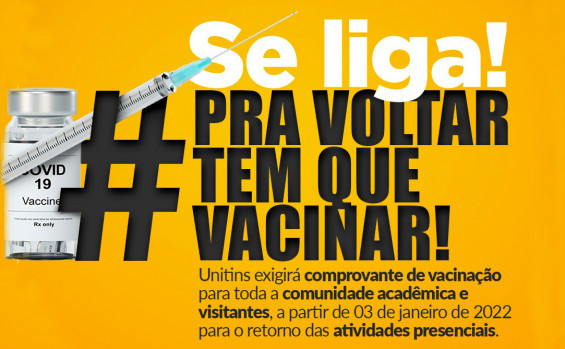 A partir do dia 3 de janeiro de 2022, a Universidade Estadual do Tocantins (Unitins) exigirá a apresentação do comprovante de vacinação como requisito obrigatório para a entrada e permanência em suas unidades, além da continuidade dos protocolos de segurança em saúde que já estavam em vigor.